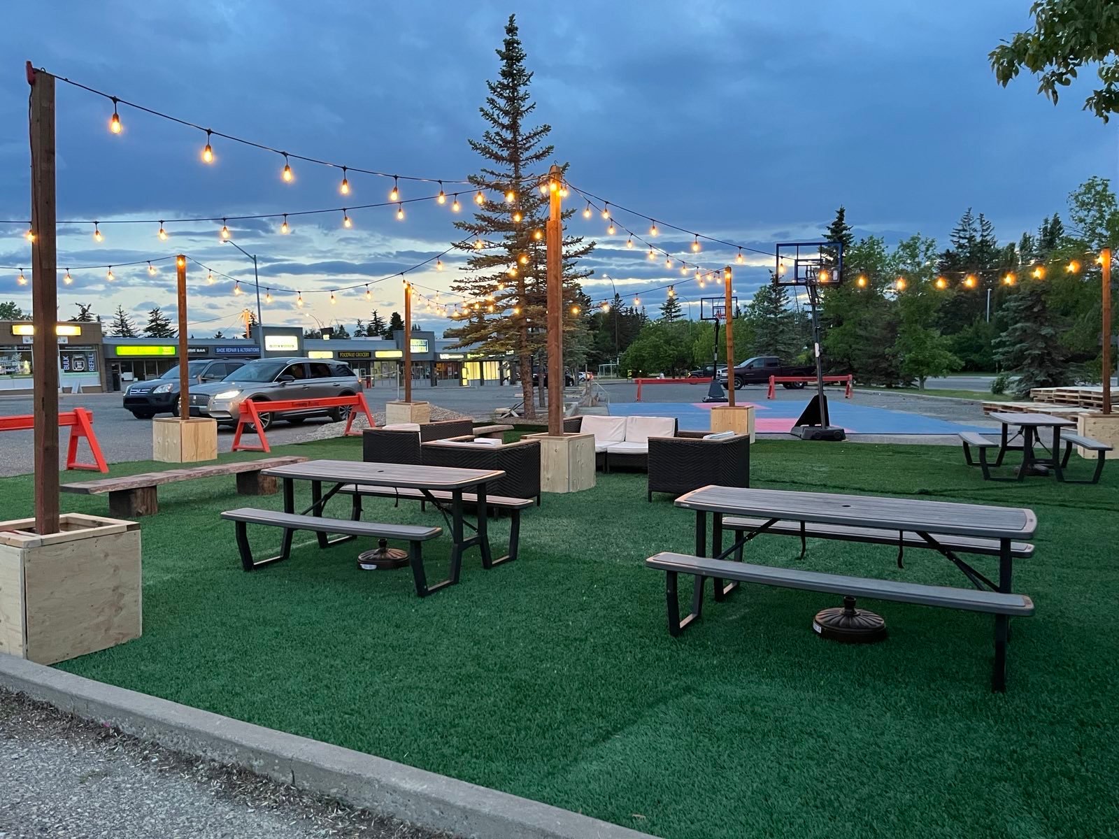 Christian Life Assembly (@cla.calgary) received an ActivateYYC grant to transform their parking lot into a vibrant community park—and the results are inspiring. The space featured turf, patio furniture, solar string lights, a beautiful playground set, a full-length basketball court, and even barbecues.
